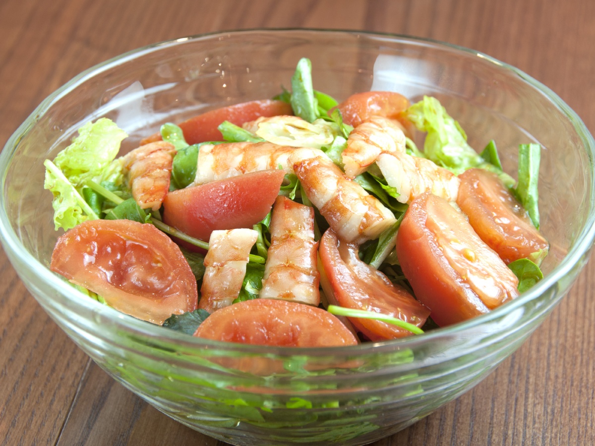 アメーラトマトと海老のバルサミコグリーンサラダ 1200円 |
