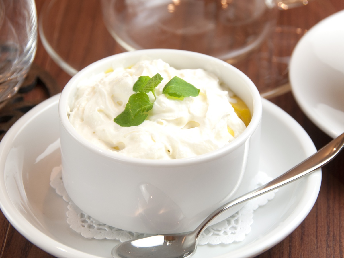 ココナッツ風味のフルーツヨーグルト 生クリーム仕立て |